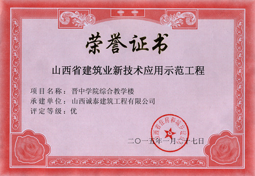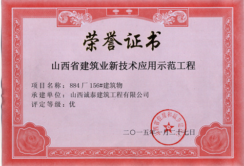 由山西誠泰建筑工程有限公司承建的884廠156#建筑物、晉中學院綜合教學樓項目榮獲山西省建筑業新技術應用示范工程。